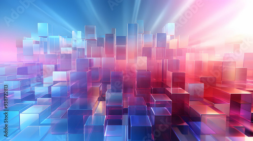 Abstract Glass Blocks Create a Vibrant and Modern Background with Glowing Lights