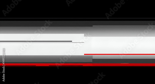 Abstract glitch art displaying horizontal bands of grayscale and red. Static image with no discernible subject or action. Visual artist with no specific location -