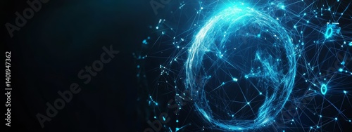 Abstract Global Connectivity Concept with Glowing Blue Data Links Around Earth and Copy Space for Technology Banner Design