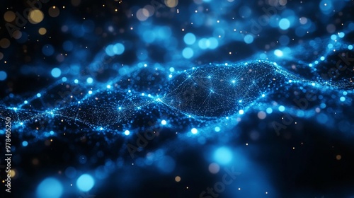 Abstract Glowing Blue Particle Wave with Bokeh Lights Generative AI