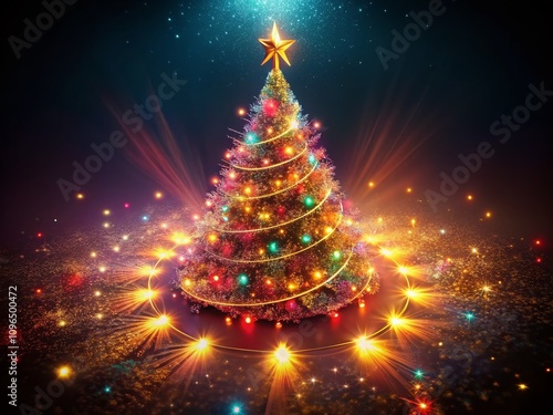 Abstract Glowing Christmas Tree on a Dark Background for Holiday Decor and Festive Celebrations with Copy Space for Text or Messages