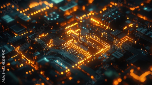 Abstract Glowing Circuit Board Technology Background Futuristic Digital Microchip Design