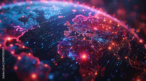 Abstract glowing digital globe with a focus on Europe, representing global connectivity.