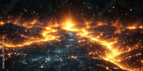 Abstract glowing dots and lines creating a digital landscape on a dark backdrop, embodying the concept of data flow