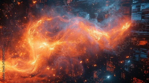Abstract glowing energy flow representing pyrolysis in digital data environment.