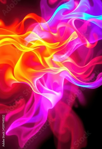 Abstract glowing flame loop, white background Intense, vibrant colors, seamless animation, loop, energy
