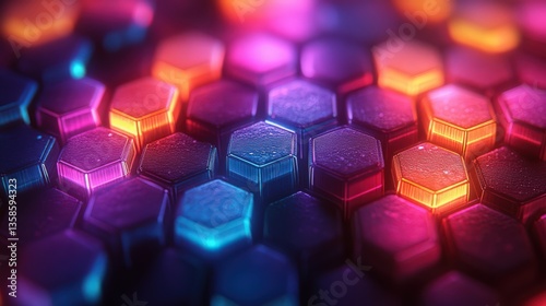 Abstract glowing hexagon arrangement in vibrant colors, artistic background