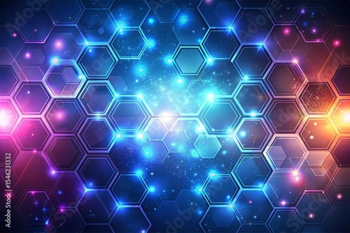 Abstract glowing hexagonal network background, vibrant blue and pink hues, futuristic technology concept