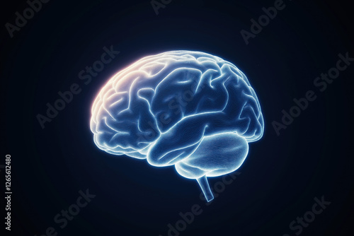 Abstract Glowing Human Brain Concept, Soft Light Radiating From Within, Subtle Gradients Of Light Blue, Floating In Dark Space, Modern And Sleek Design