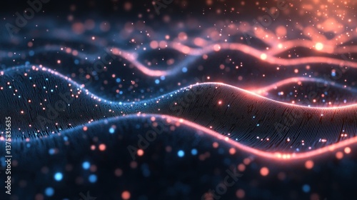 abstract glowing landscape with digital waves and blurred lights a vibrant depiction of network connections and technological advancement