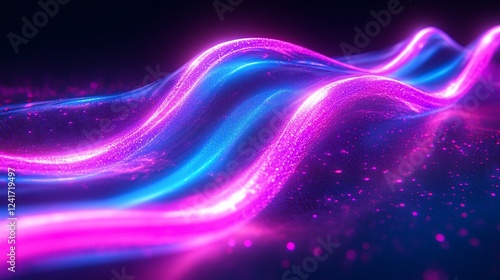 Abstract glowing neon waves, cosmic background, digital art, website banner