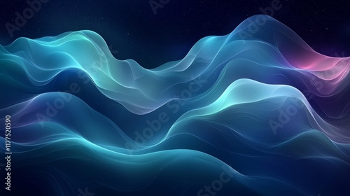 Abstract glowing neon waves, dynamic curves, vibrant colors, dark background, digital art.