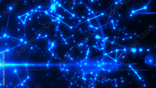 Abstract glowing network of blue nodes and connections forming a digital mesh over a dark futuristic background