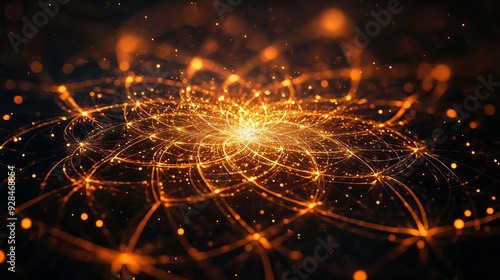 Abstract glowing orange lines create a mesmerizing pattern on a dark background