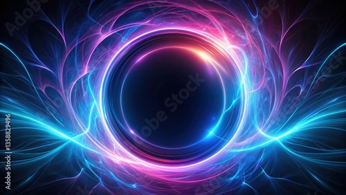 Abstract Glowing Orb Encircled by Dynamic Energy Streams and Illuminated Plasma Filaments
