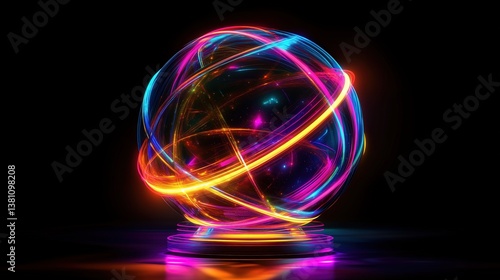 Abstract glowing orb with colorful light trails