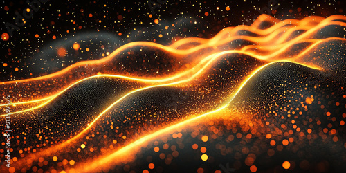 Abstract glowing particle lines and bokeh on a dark backdrop, conveying a futuristic technology concept