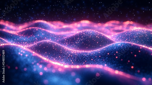 Abstract Glowing Particle Waves Flowing with Pink and Blue Color Gradient