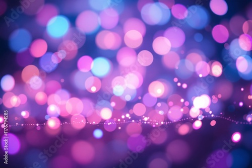 Abstract glowing purple and pink bokeh lights in circular patterns on a dark gradient background. Concept of dreamy and magical illumination. Ai generative