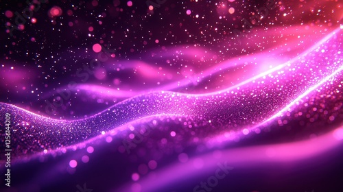 Abstract glowing purple and pink waves with sparkling particles