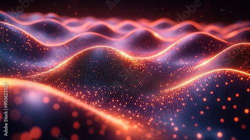 Abstract glowing wave background with orange and blue colors.
