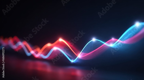 Abstract glowing wave blue and red light futuristic data visualization digital technology energy flow modern background dynamic motion smooth curve vibrant dark backdrop