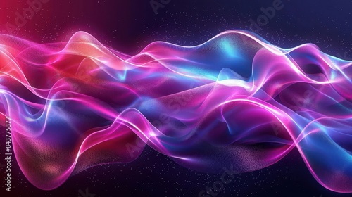 Abstract glowing waves in pink and blue, digital art, futuristic background
