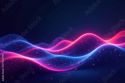 Abstract Glowing Waves of Pink and Blue Particles Flowing Seamlessly Across a Dark Background