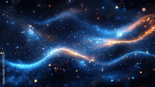 Abstract glowing wavy particles digital art. Possible use for backgrounds in tech, gaming, or design projects