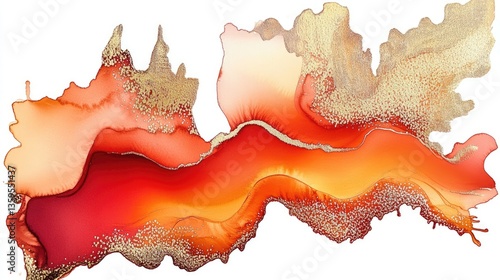 Abstract Gold and Red Ink Art