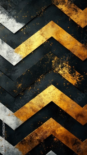 Abstract Gold and Silver Chevron Pattern on Dark Background