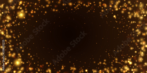Abstract Gold glittering star dust sparkling particles. Sparkle glow light effect on transparent background.