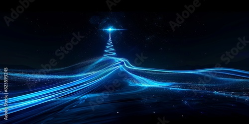 abstract gold light lines in the shape of an isolated christmas tree on a black background, a digital art illustration in the style of a long exposure camera and a starry night sky with streaks of lig