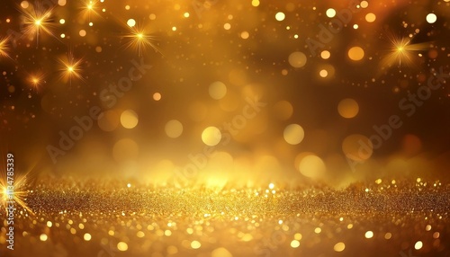 Abstract gold particle background with Christmas golden light bokeh, festive holiday background