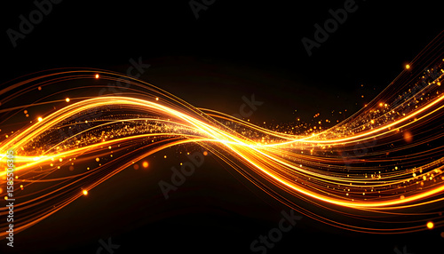 Abstract Gold Wave with Sparkling Particles on Black Background