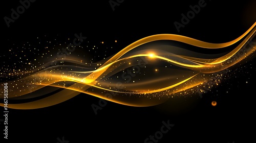 Abstract gold waves on black background (2)