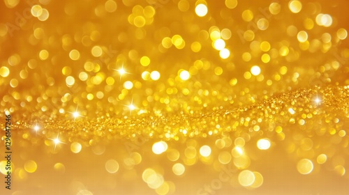 Abstract golden background with bokeh effect and shining defocused glitters. Festive gold texture for Christmas, New Year, birthday, celebration, greeting, victory, success, magic party.