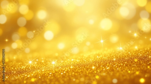 Abstract golden background with sparkling lights. Golden background with snowflakes and golden bokeh background