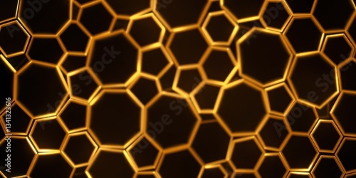 Abstract Golden Hexagon Pattern Background Interlocking Geometric Shapes