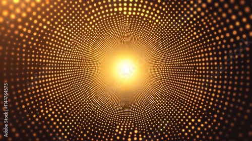 Abstract golden light tunnel with glowing dots, creating a futuristic or technological feel.