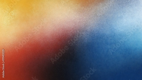 Abstract gradient background with a textured noise effect, transitioning from blue and red to warm yellow and soft light tones, modern and artistic design.
