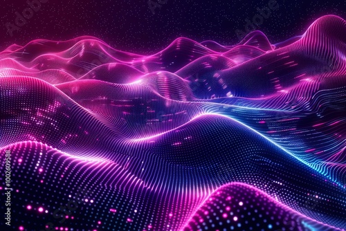 Abstract gradient hologram dynamic wave of particles. Digital wallpaper technology background. MZ