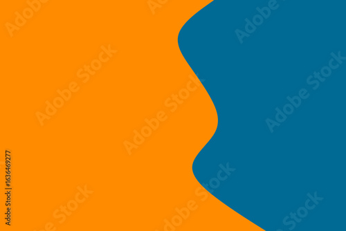 Abstract graphic design featuring a smooth, flowing curve separating vibrant orange and deep blue color fields.