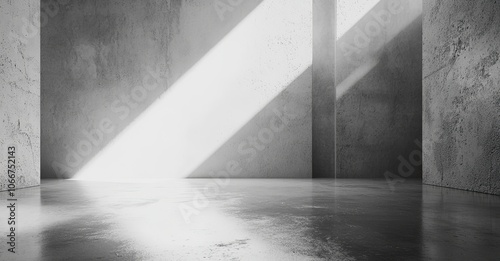 Abstract gray concrete wall background with floor and reflections, interior space for presentation or showcase of products. Design template for posters, banners