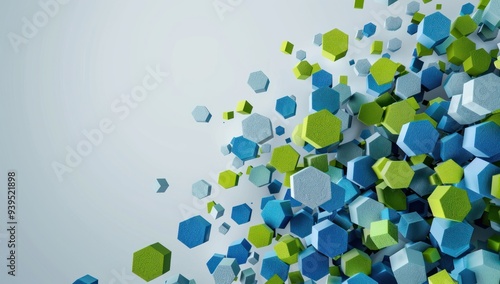 Abstract Green and Blue Hexagon Shapes on a White Background