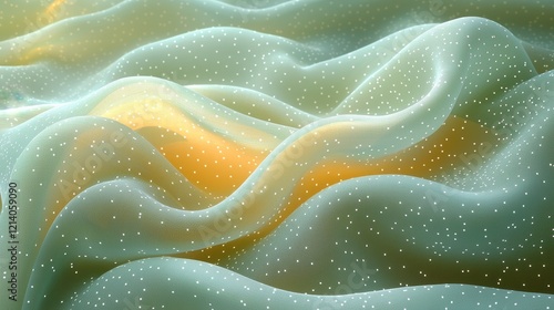 Abstract green and yellow wavy fabric texture with subtle light dots.