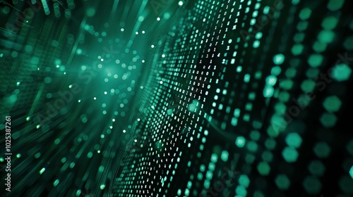 Abstract Green Background with Binary Code and Bokeh Lights