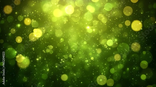 Abstract Green Bokeh Background with Glitter and Sparkles