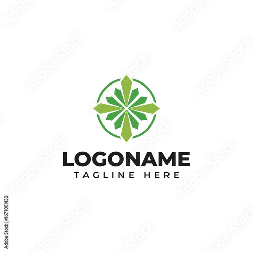 Abstract Green Compass Star Logo Design Emblem