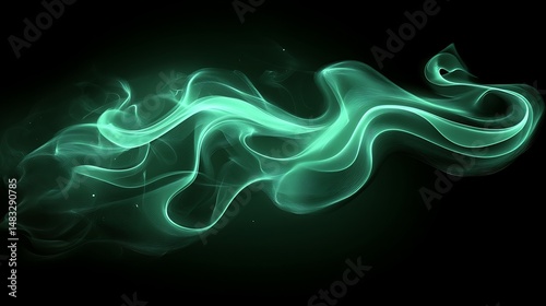 Abstract green flowing wave pattern on the dark background, modern graphic